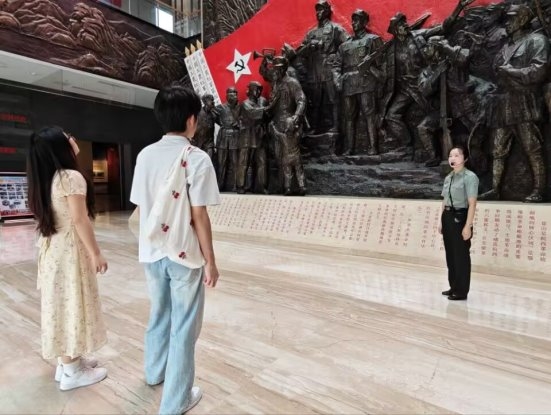 实践团首站来到大别山安徽红色区域中心纪念馆与红源广场。在讲解中,革命遗物、历史照片和场景复原,生动展现了霍山儿女浴血奋战的峥嵘岁月。瞻仰庄严肃穆的烈士纪念碑,聆听英雄事迹,学子们深受洗礼,感悟到传承红色基因、投身乡村振兴的时代使命。