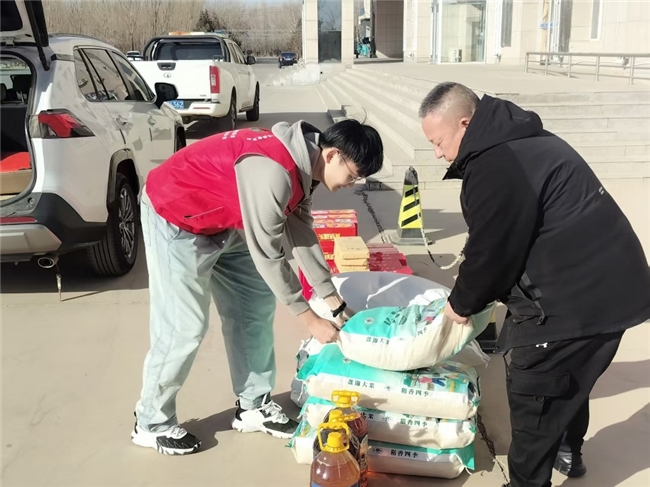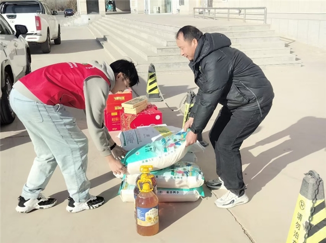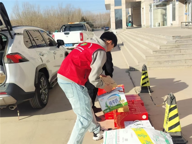 活动当天,巴音宝力格镇政府门口暖意融融,志愿服务队的队员们早早抵达,与镇政府工作人员一同将慰问物资分类整理、整齐摆放。前来领取物资的贫困群众有序排队,队员们主动上前,将沉甸甸的米面油和茶叶逐一递到群众手中,动作麻利却又细致周到。每递出一份物资,队员们都会亲切地与群众唠家常,询问他们的日常起居和生活近况,叮嘱大家冬日注意添衣保暖,照顾好身体。朴实的话语、真诚的关怀,让群众们脸上都露出了欣慰的笑容,一声声感谢在现场交织,汇成冬日里最温暖的旋律。