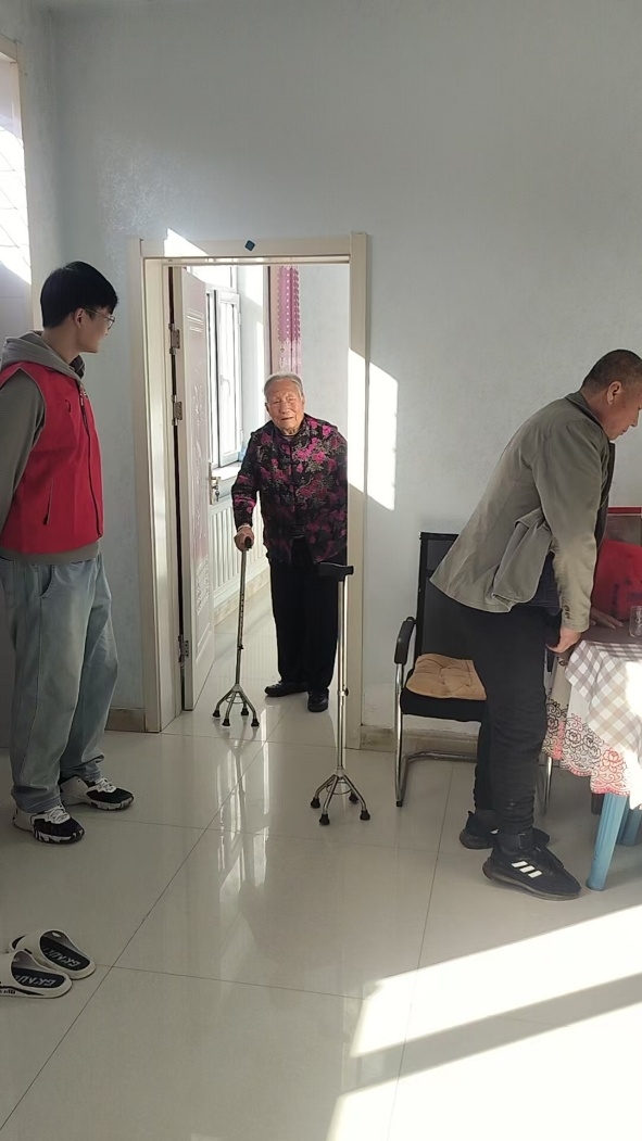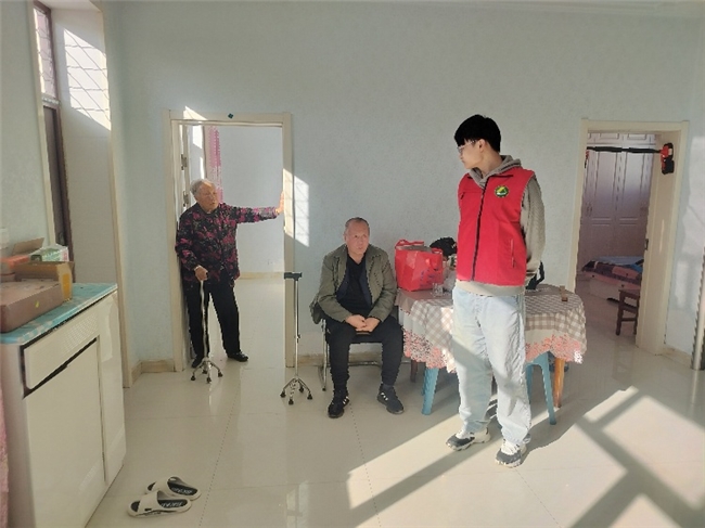 集体慰问过后,服务队始终牵挂着辖区内腿脚不便、行动困难的贫困群众,他们无法到现场领取物资,队员们便化身“暖心送递员”,提着慰问物资,踏着乡间小路走街串巷,上门开展一对一慰问。在独居老人和行动不便的群众家中,队员们与他们促膝交谈,仔细了解他们的生活难题和实际需求,耐心倾听他们的心声,用贴心的陪伴驱散老人的孤单。看着队员们不辞辛苦送物资上门,一位行动不便的大爷紧紧握着志愿者的手,反复说着“谢谢你们想着我们”,简单的话语里满是感动。